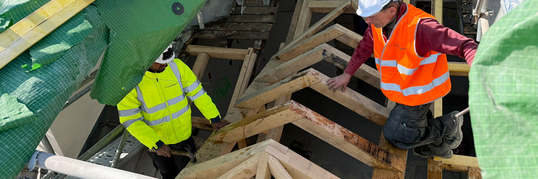 - Préparé et taillé en atelier les nouvelles pièces de charpente (montants, chevrons, traverses) en bois massif, adaptées aux dimensions et au galbe des chiens-assis ;